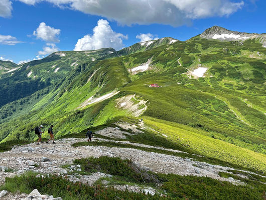 Ushiro-Tateyama Range - The Ushiro-Tateyama Range largely forms the border between Niigata and Toyama Prefectures to the north and west, and Nagano to the south and east. The 1998 Nagano Winter Olympics were held in part here at the famous ski resorts of the Hakuba Valley, which hug the range's eastern slopes, and visitors from around the world flock here each winter to ski Japan's pristine powder. These are our local mountains, and are quite popular with Japanese hikers during the "green season," yet remain relatively undiscovered overseas. The views are some of the best in Japan, with areas that remain snow-covered year-round, vast fields of wildflowers, intense greenery, and so much more.